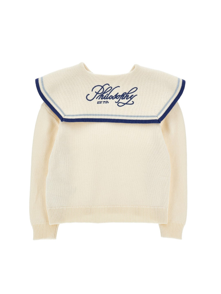 Philosophy Knit Off White Sweater With Sailor Collar