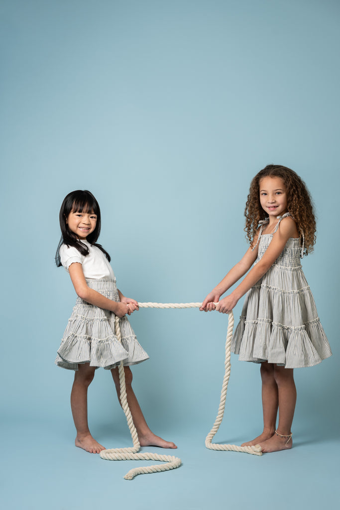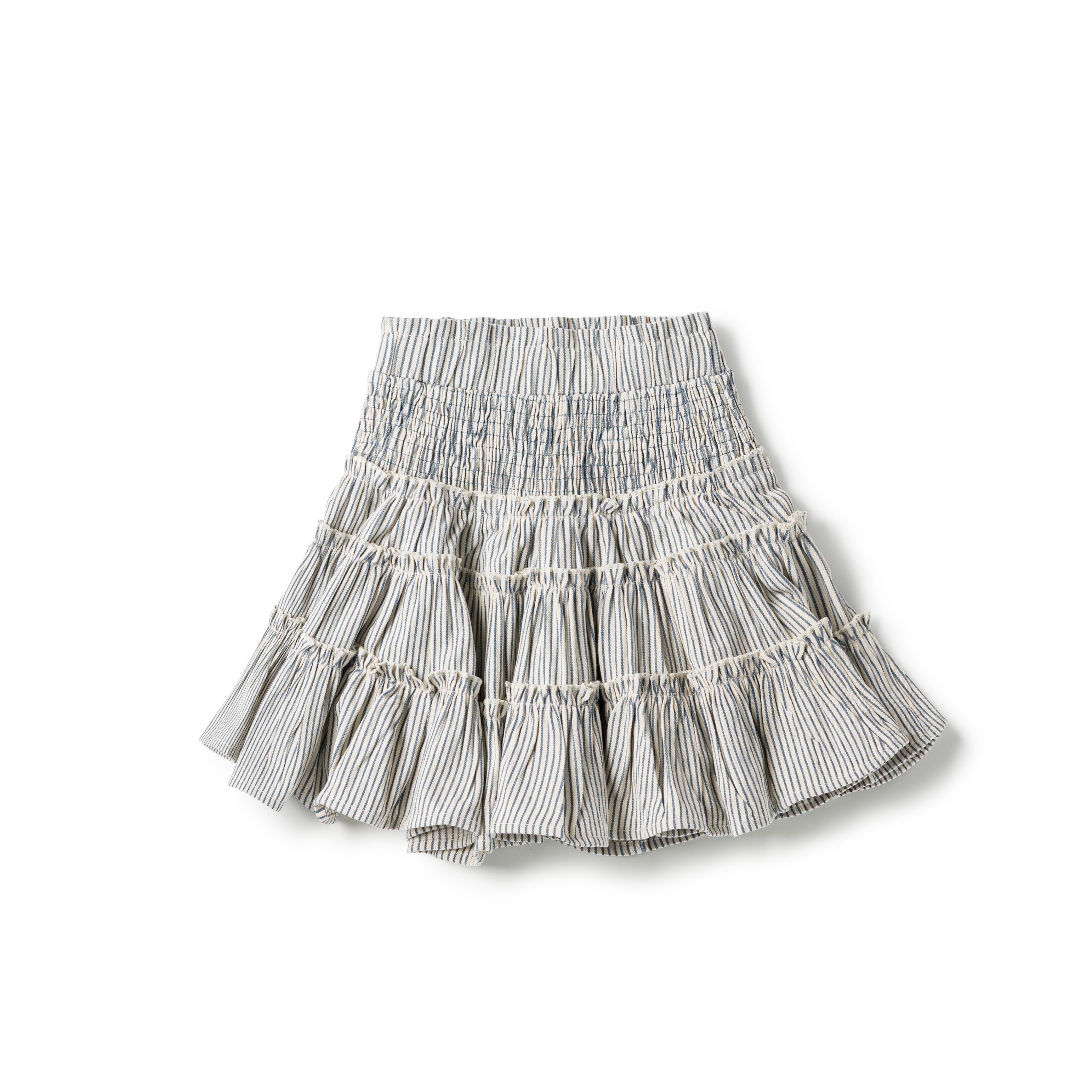 Birnham on the Sea Ruffle Denim Blue Stripe Skirt