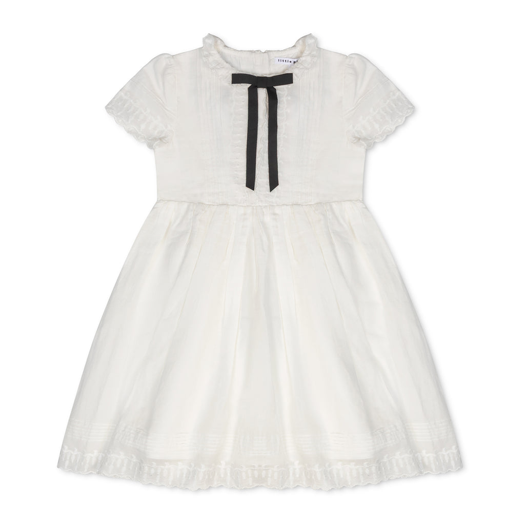 Little Parni Evening Short Sleeves White Bow Dress K629