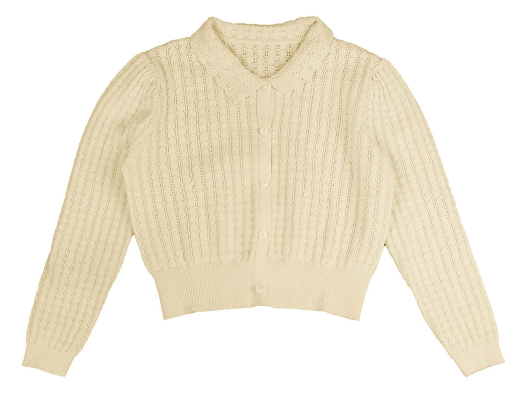 HEV Collar Textured Knit Ivory Sweater
