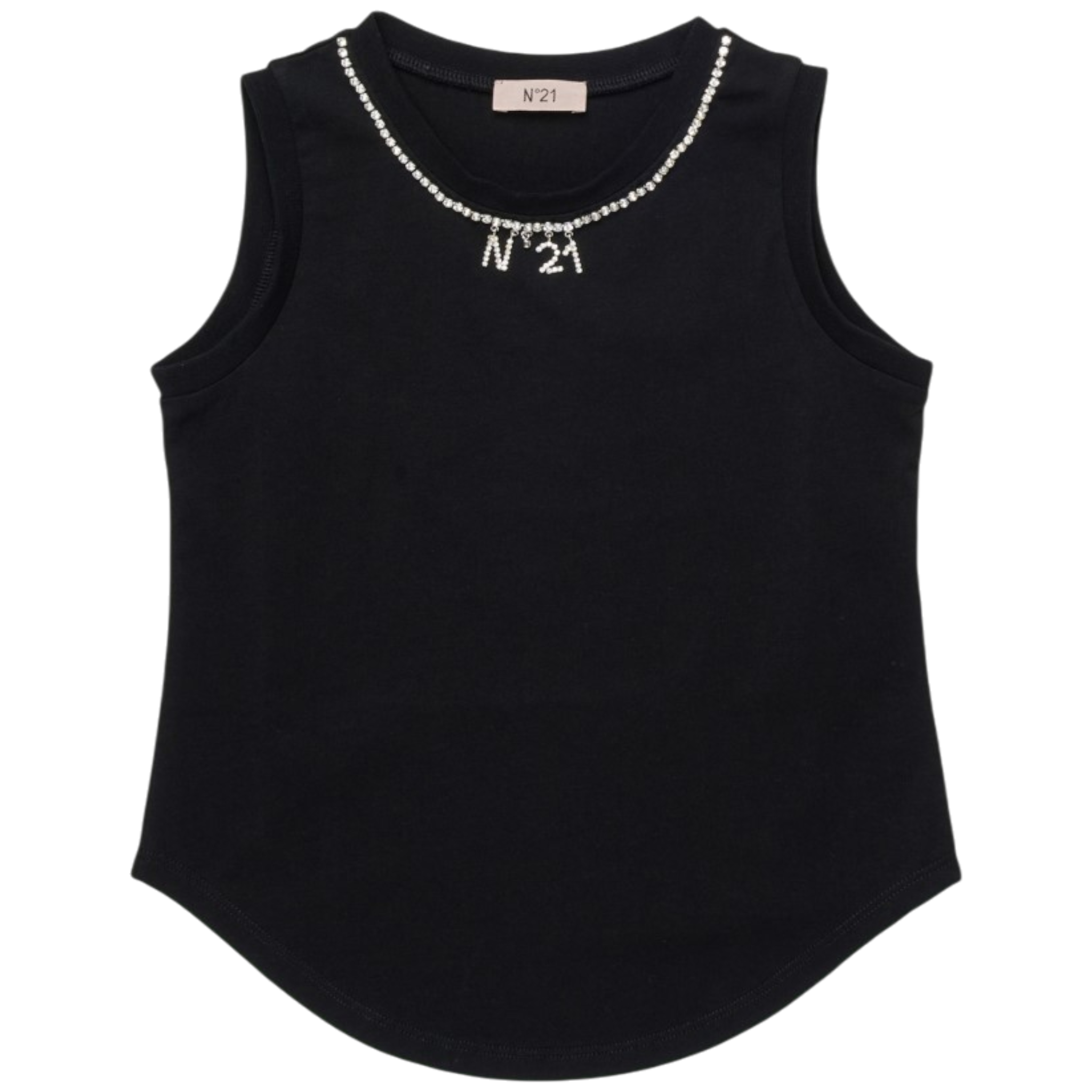 No. 21 Sleeveless Black Top With Jeweled Logo Trim