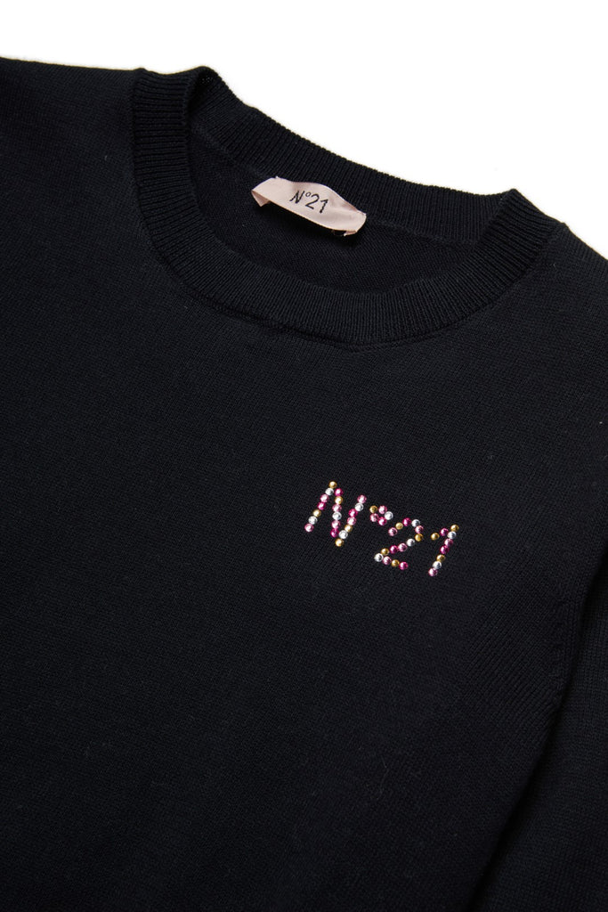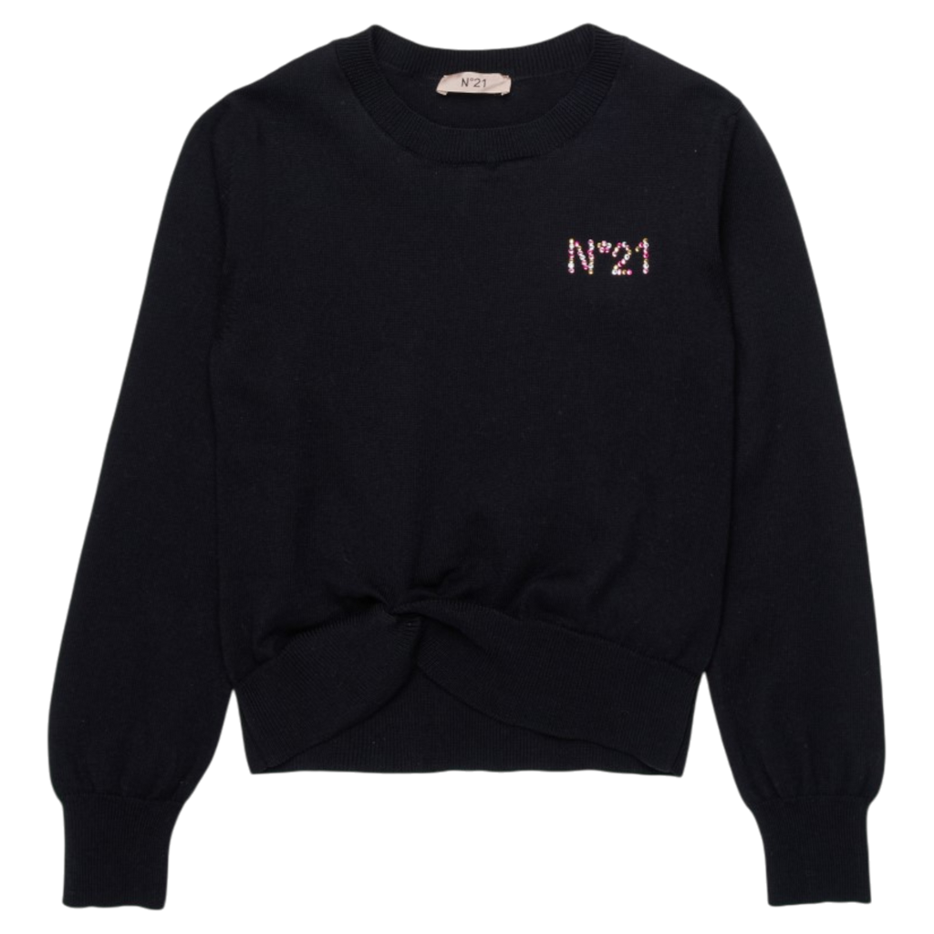 No. 21 Knit With Twisted Hem Black Sweater