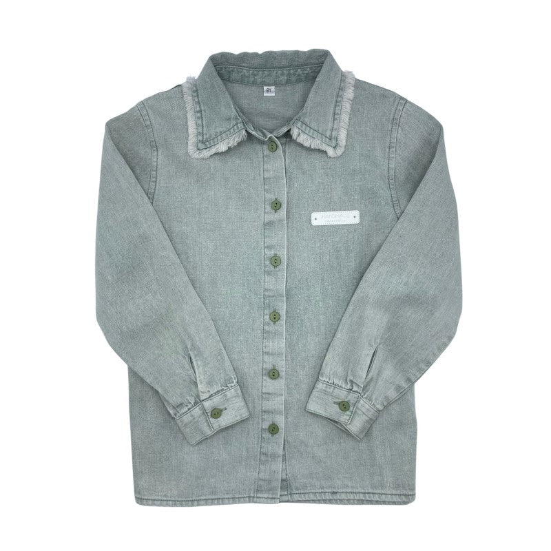 Zaloo Seagreen Washed Fringe Girls Shirt