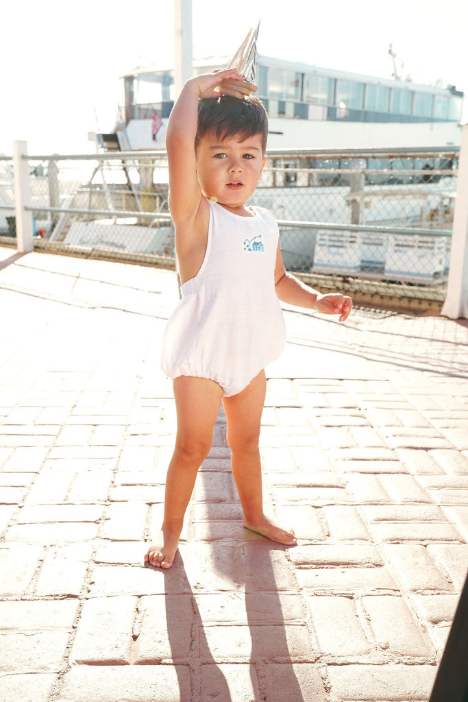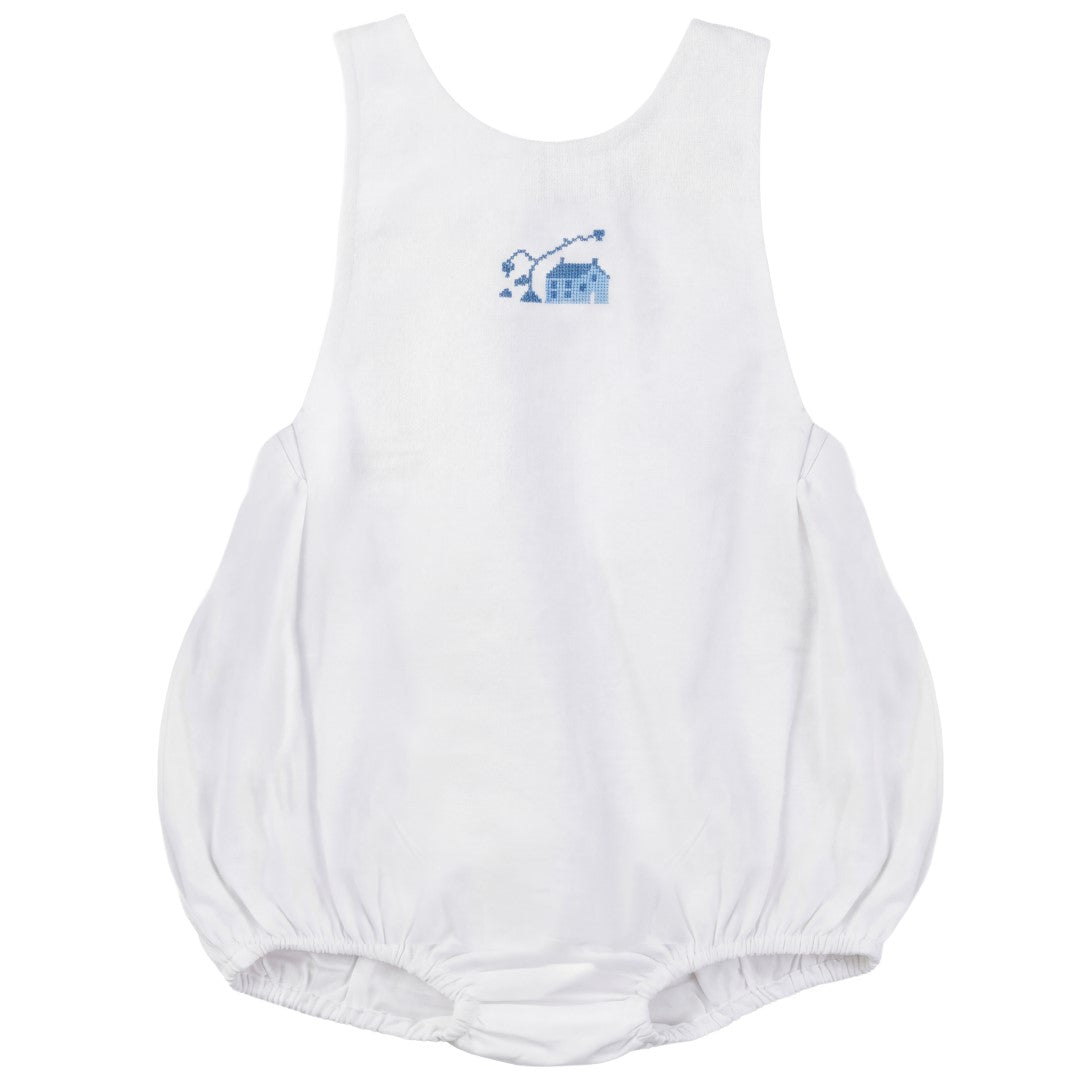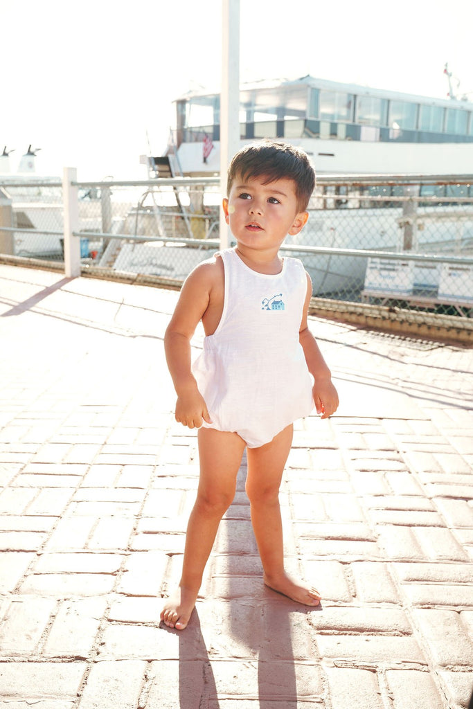 Calla Lili Baby Boy Linen White Romper with House