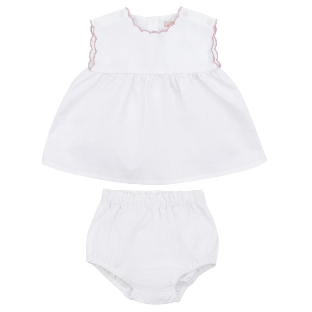 Calla Lili Baby Linen White/Dusty Set With Scallops