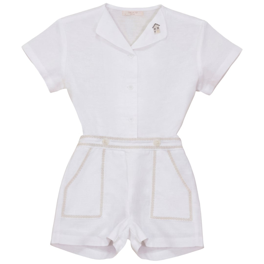 Calla Lili Boy Linen White/Sand Shirt With House