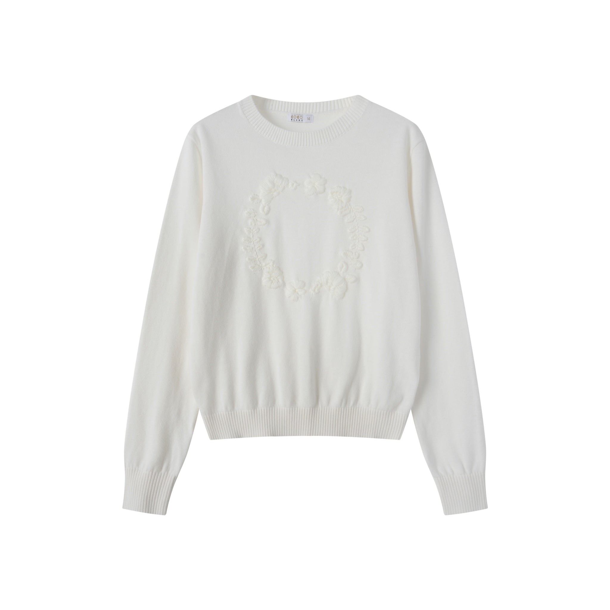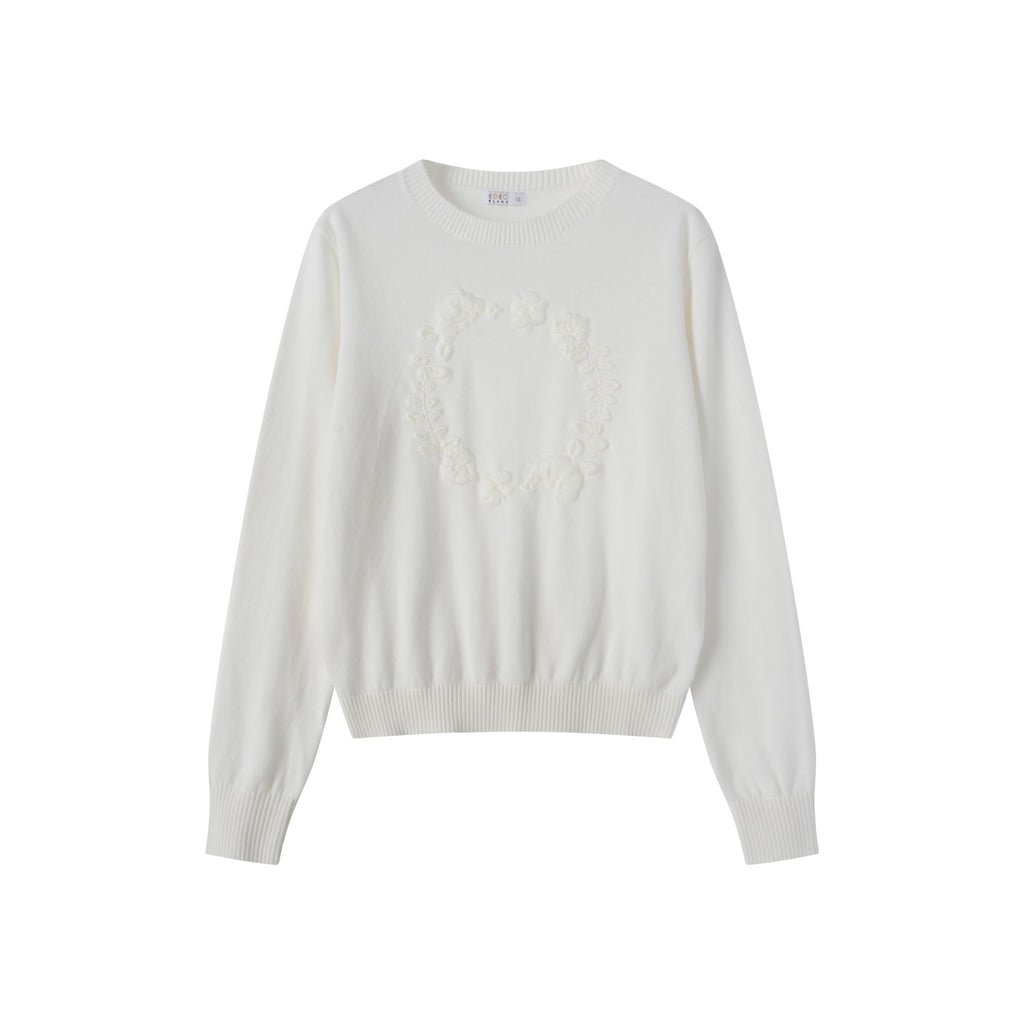 Coco Blanc Chunky Crew Embossed Cream Sweater