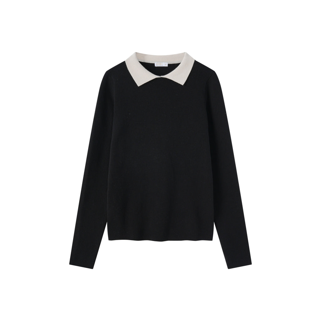 Coco Blanc Black Sweater With Cream Collar