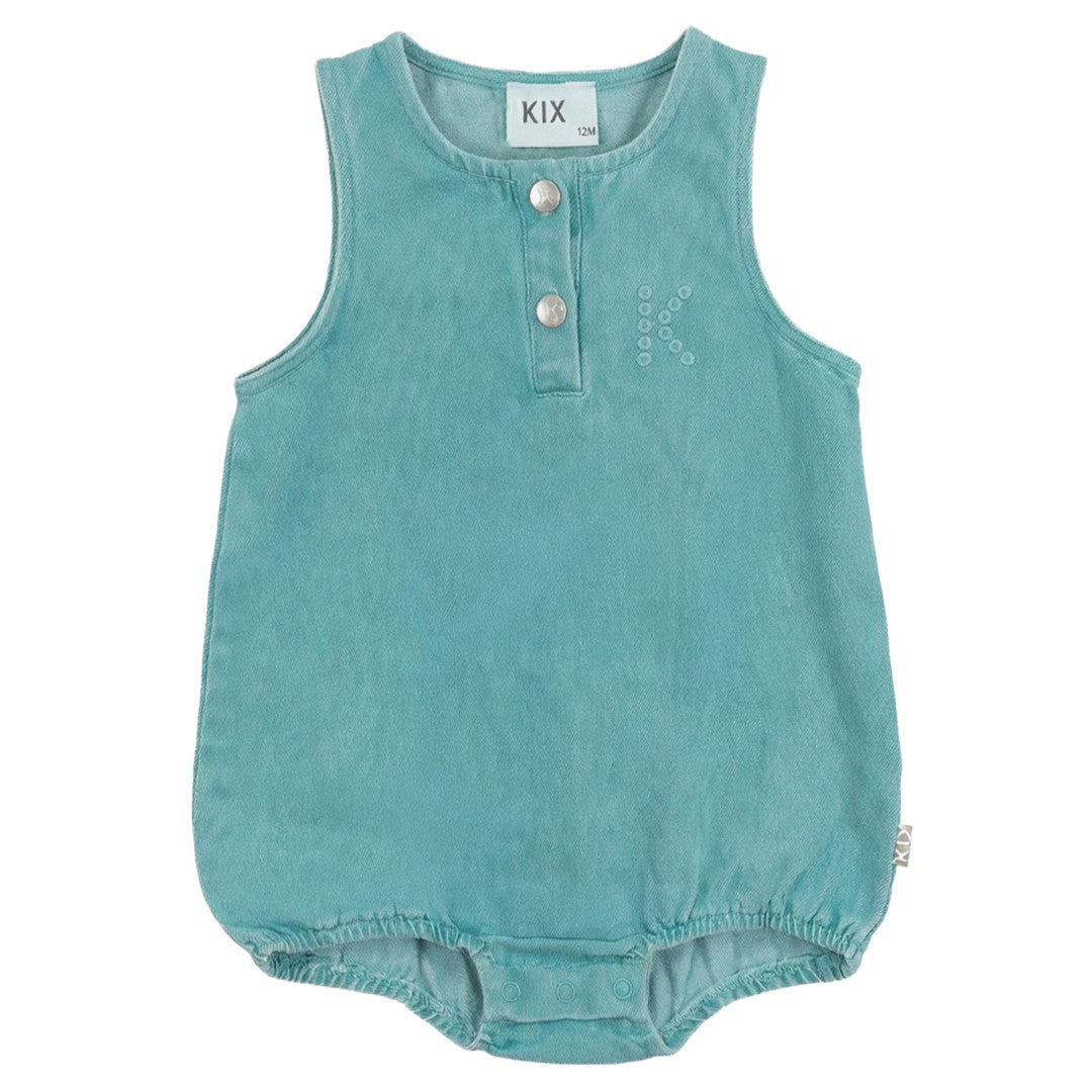 Kix Denim Baby Boy Teal Romper
