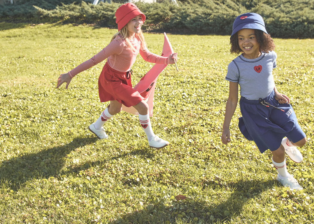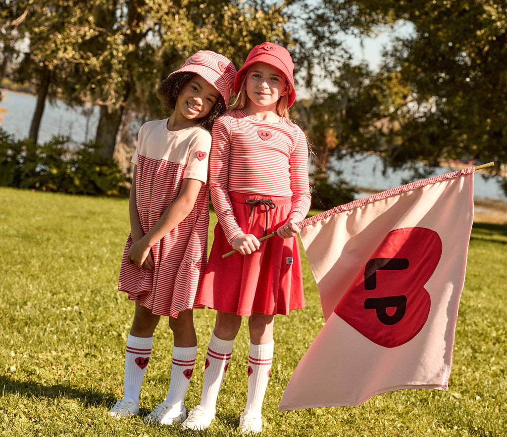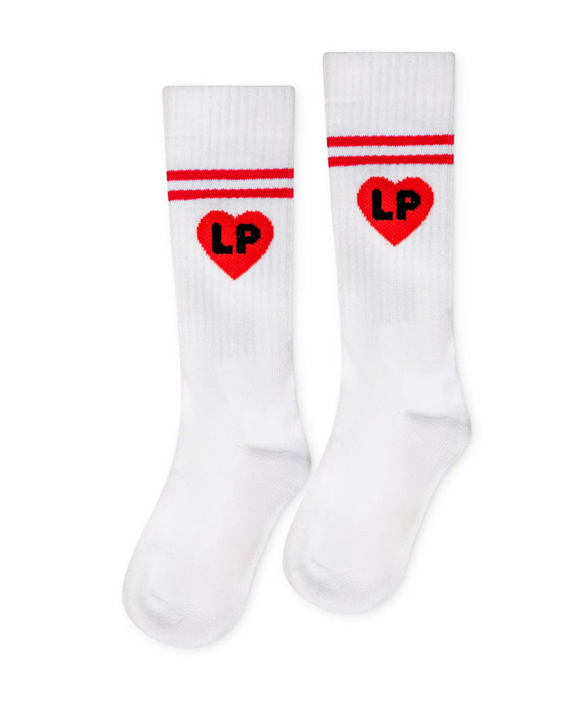 Little Parni Heart Play White/Coral Knee Socks LP-006