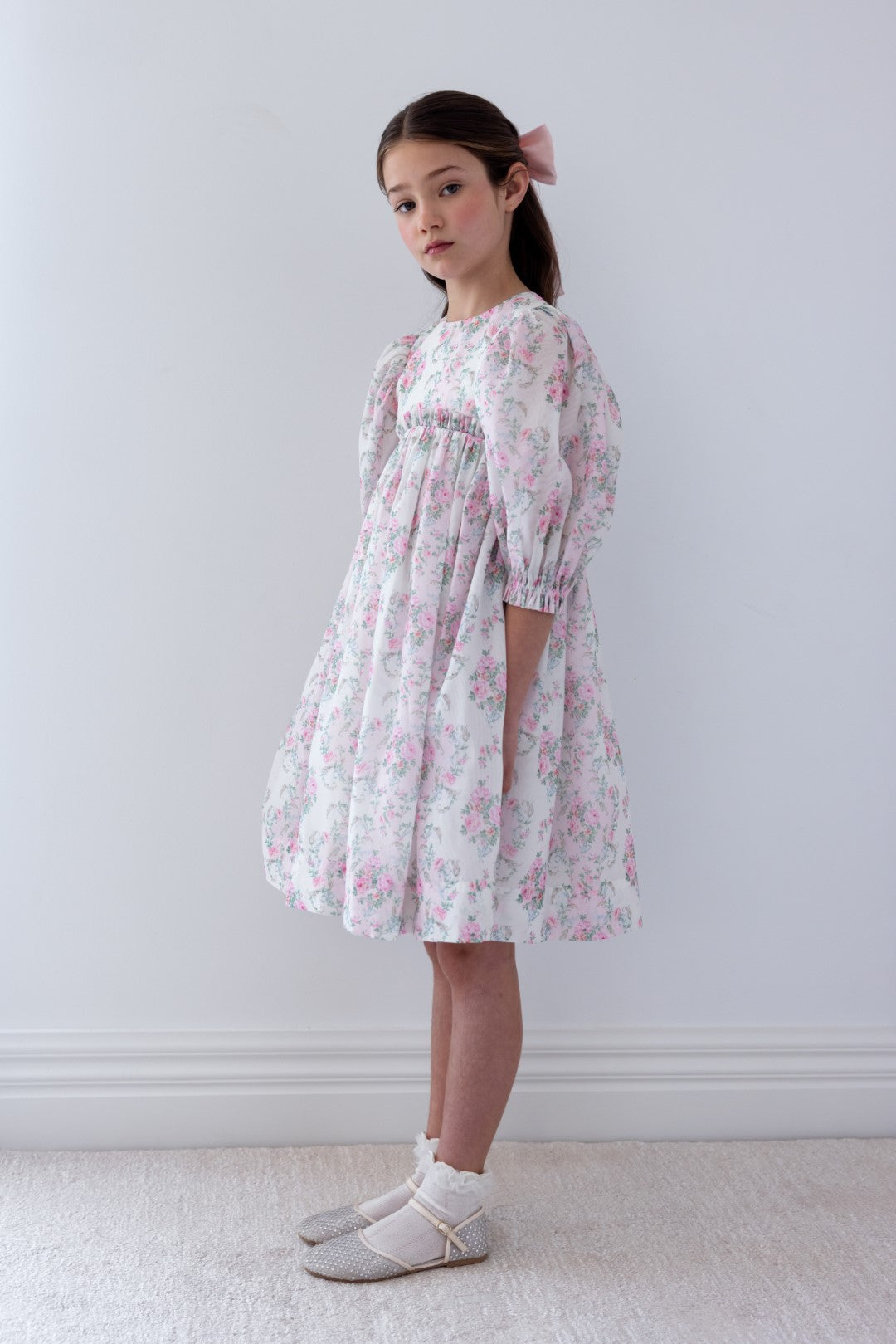Petite Amalie Elbow Sleeve Organza Vintage Wallpaper Print Dress