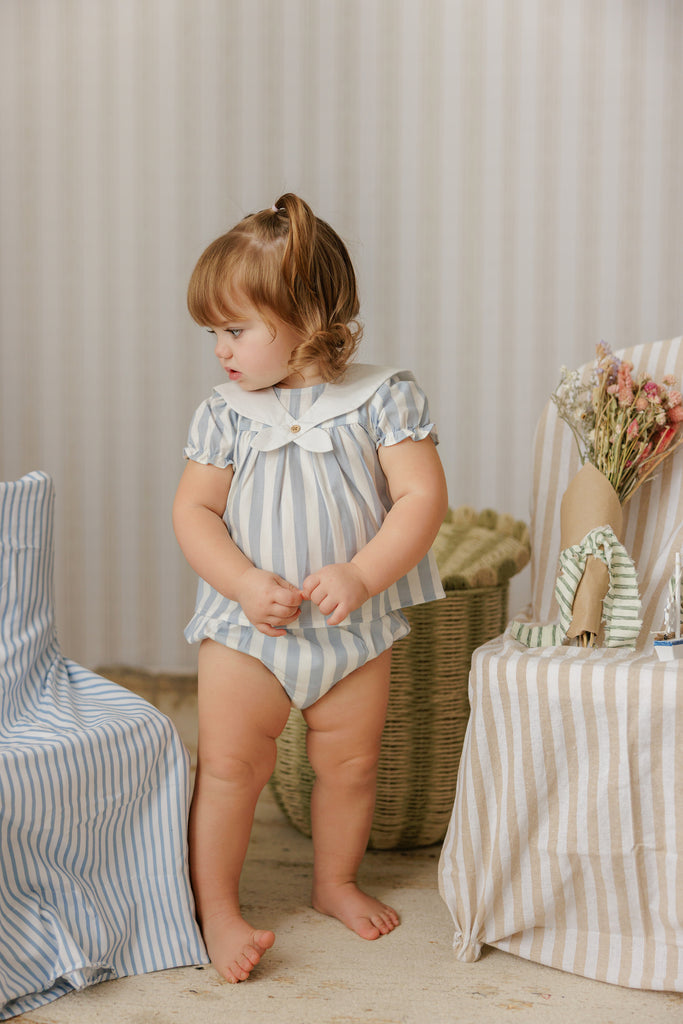 Mini P Baby Girl Sailor Striped Blue/White Set